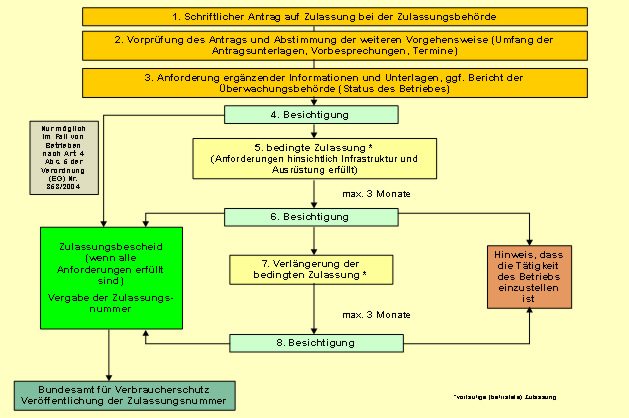 Mit der Neuordnung des EU-Lebensmittelhygienerechts erhält die Zulassung von Betrieben eine neue Bedeutung. Seit dem 1. Januar 2006 besteht eine Zulassungspflicht. Das Inverkehrbringen von Lebensmitteln tierischen Ursprungs aus nicht zugelassenen Betrieben ist auf genau definierte Ausnahmefälle beschränkt.