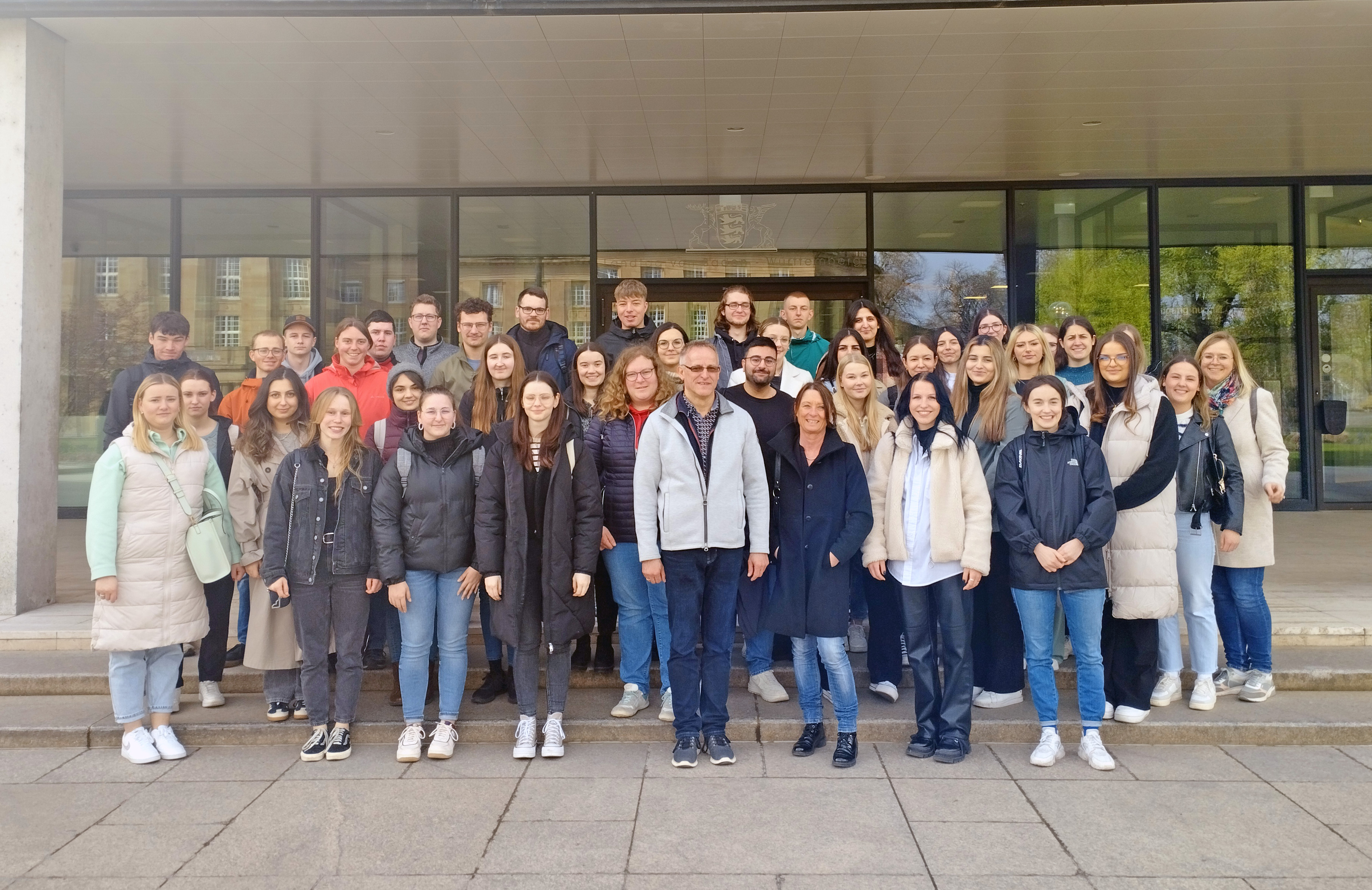 Rund 40 Auszubildende und Studierende fuhren im Rahmen der diesjährigen Azubiexkursion mit den Kolleginnen und Kollegen aus dem Bereich Ausbildung sowie dem Personalratsvorsitzenden und der Jugend- und Auszubildendenvertretung vor wenigen Wochen gemeinsam mit dem Zug nach Stuttgart. Als erste Station besuchte die Gruppe den Landtag von Baden-Württemberg. Nach einer interessanten Führung durch das Landtagsgebäude stand im Plenarsaal ein spannender Austausch mit dem Landtagsabgeordneten für den Alb-Donau-Kreis sowie Fraktionsvorsitzenden der CDU, Manuel Hagel, an. Danach gab es ein gemeinsames Mittagessen, ehe zum Abschluss der Exkursion noch ein Besuch des Planetariums Stuttgart anstand. Mit faszinierenden Bildern lernte die Gruppe kennen, was Sonnenstürme sind und welche Gefahren diese für die Erde darstellen. Es war ein lehrreicher, gelungener Tag, bei dem auch der Austausch untereinander nicht zu kurz kam.