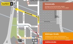 In den letzten Jahren hatten die Fernwärme Ulm (FUG), die Ulmer Entsorgungsbetriebe (EBU) und die SWU Netze umfangreiche Leitungs- und Kanalarbeiten in der Schillerstraße durchgeführt. Die Tiefbauarbeiten wurden aber nur provisorisch verschlossen. Nun erfolgt in einem letzten Schritt die neue Asphaltierung zwischen der Einfahrt des ehemaligen ZOB West bis zur Kreuzung Marner-Walk-Straße. Der Verkehr wird an der Baustelle über den ehemaligen ZOB West vorbeigeführt. Der Bereich zwischen der Ausfahrt vom ZOB West bis zur Marner-Walk-Straße wird nur halbseitig gesperrt.