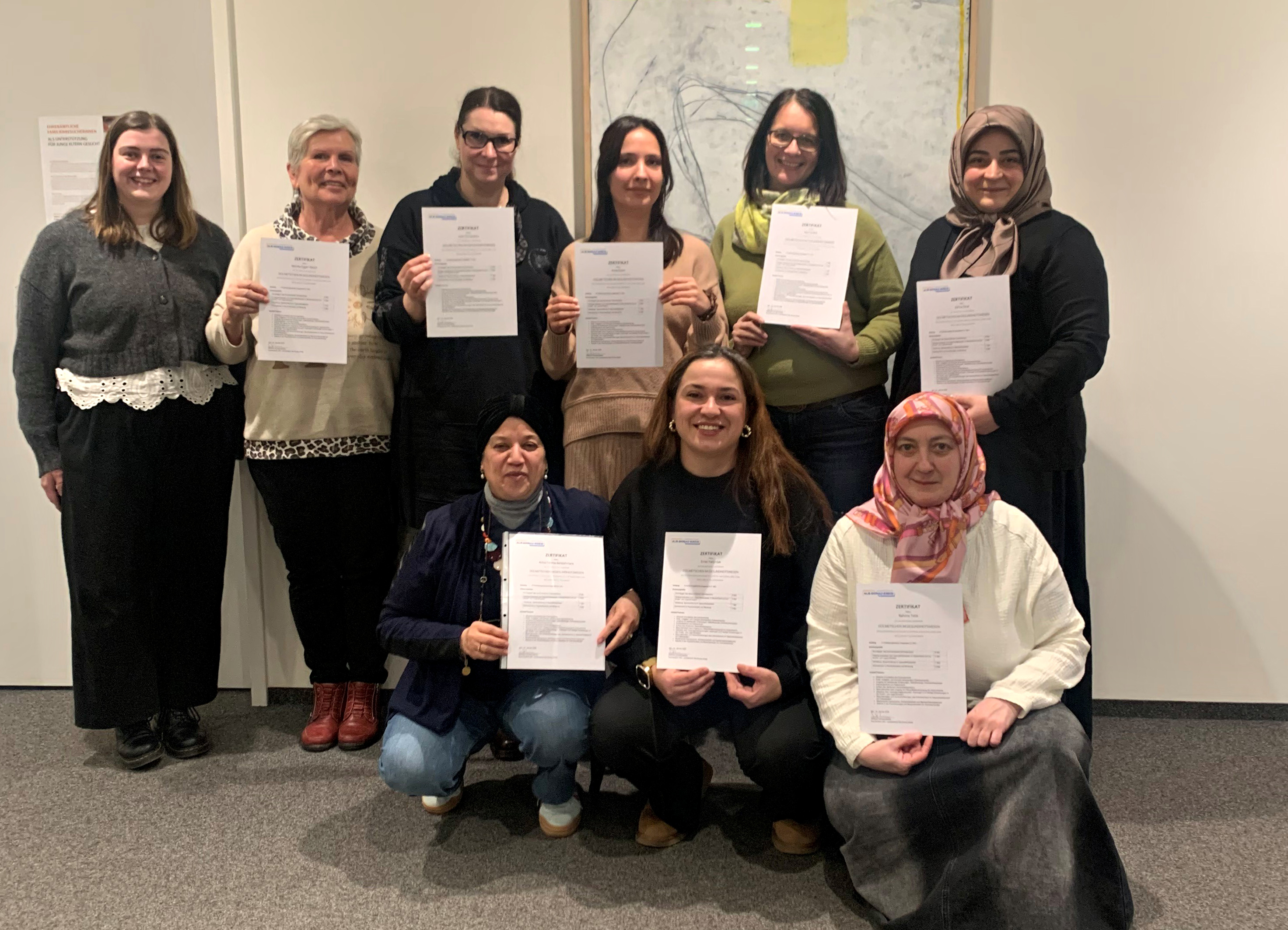 Insgesamt 18 ehrenamtlich tätige Sprachmittlerinnen und Sprachmittler haben erfolgreich an einer Fortbildungsreihe zum Thema „Dolmetschen im Gesundheitswesen“ teilgenommen. Sie erwarben fundierte Kenntnisse über das deutsche Gesundheitssystem, die Kinder- und Jugendmedizin sowie das Dolmetschen in Psychotherapie- und Beratungssituationen. Ergänzend wurden nochmals die Grundlagen des ehrenamtlichen Dolmetschens aufgefrischt und spezifisch für das Gesundheitswesen vertieft. Insgesamt umfasste die Fortbildung 21 Unterrichtsstunden.