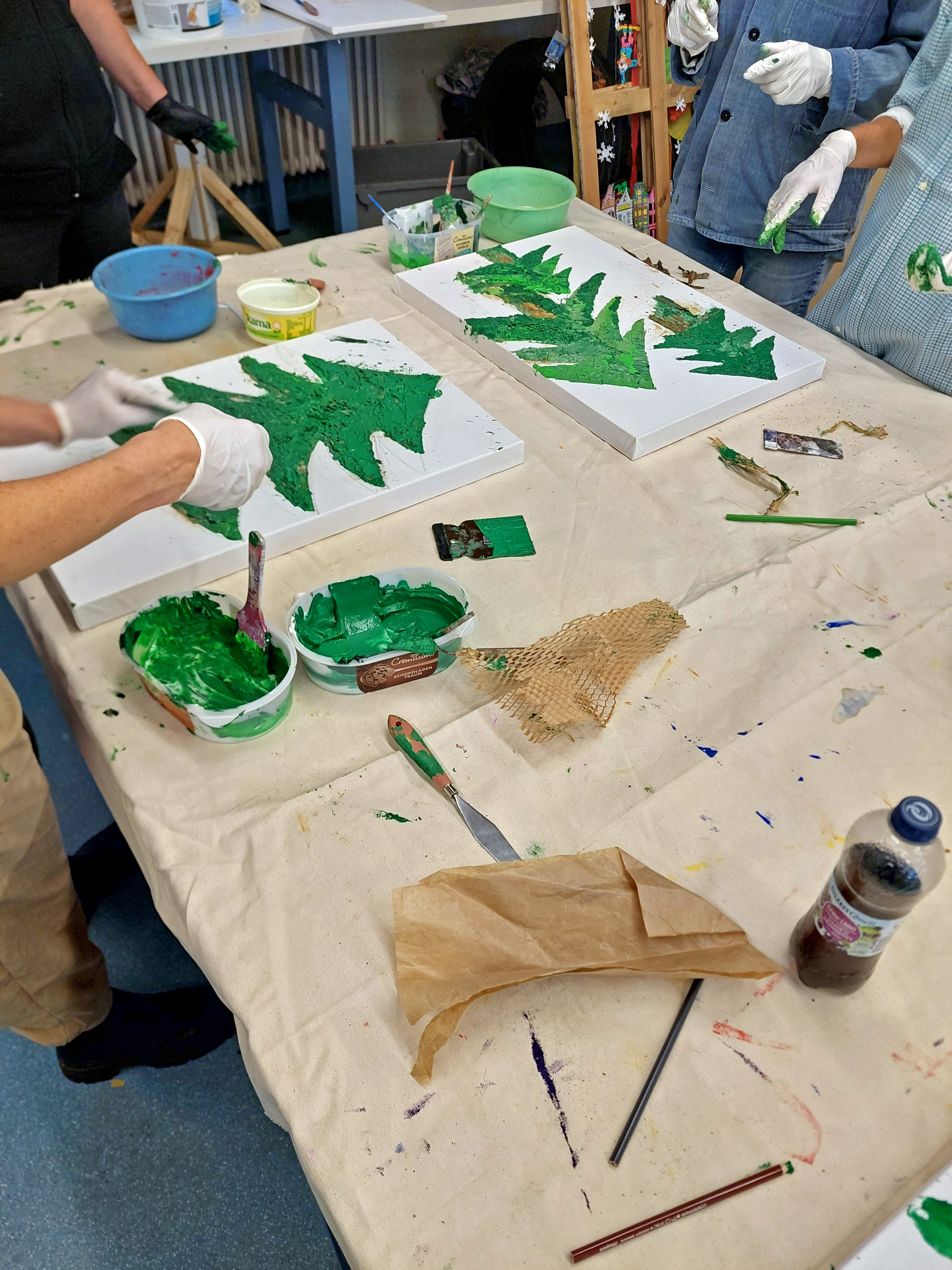 Mit Pinsel, Spachtel und verschiedenen Materialien setzten die Teilnehmenden Farben, Formen und Erinnerungen in Beziehung zueinander. Das gemeinsame Gestalten machte deutlich, wie sehr kreative Ausdrucksformen Verbindungen stärken und verborgene Erinnerungen lebendig werden lassen können.