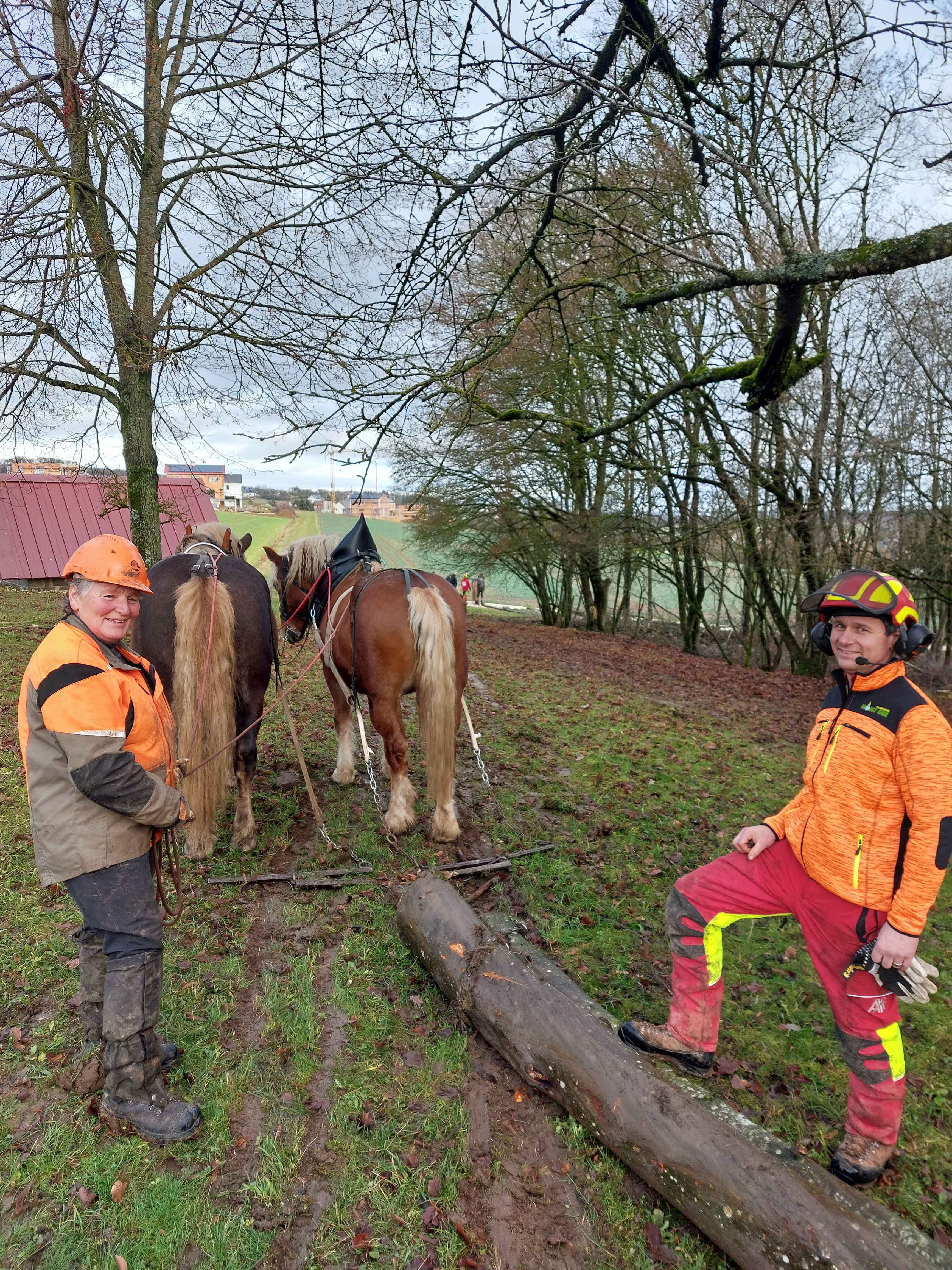 In der Gemeinde Altheim waren bei der Holzernte im Schulwald kürzlich Spezialisten im Einsatz: Rückepferde! Die Tiere wurden eingesetzt, weil der Wald dort nur schlecht erschlossen ist. Sie sind in der Lage, das Holz schonend und umweltfreundlich zu transportieren ohne den Waldboden unnötig zu belasten. „Die Verwendung von Rückepferden ist eine Form der Holzernte, die sowohl Tradition als auch Innovation verbindet“, erklärte Förster Michel Müller-Jost.